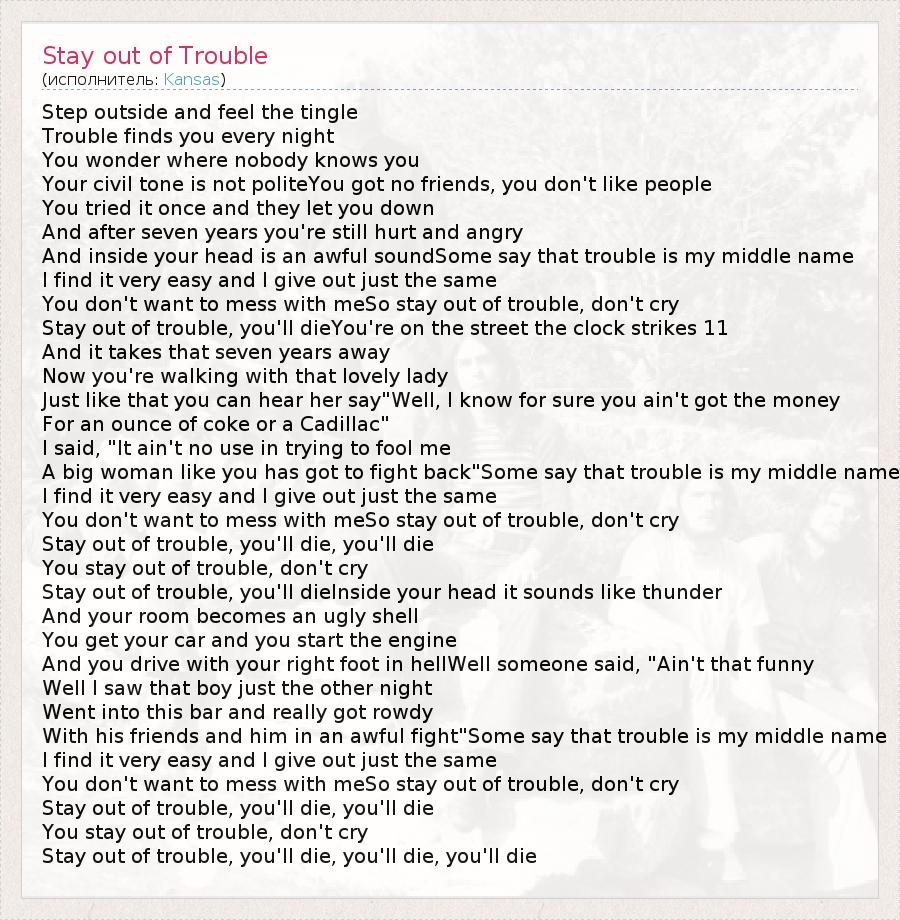 А как ты думаешь, о чем песня "Stay out of Trouble" ?