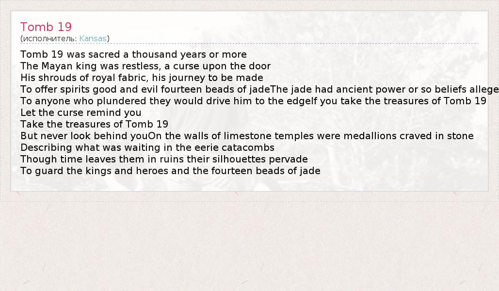 А как ты думаешь, о чем песня "Tomb 19" ?