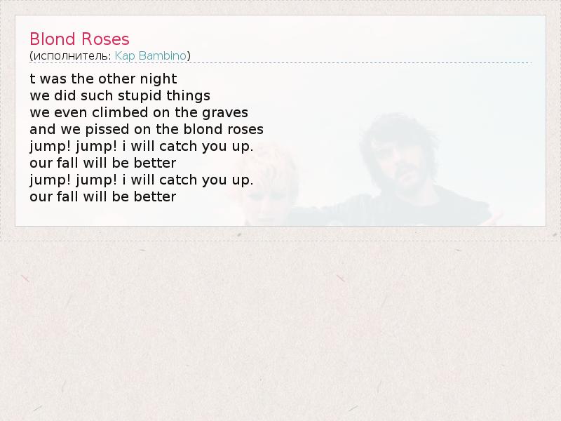 А как ты думаешь, о чем песня "Blond Roses" ?