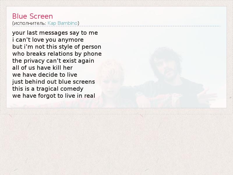 А как ты думаешь, о чем песня "Blue Screen" ?