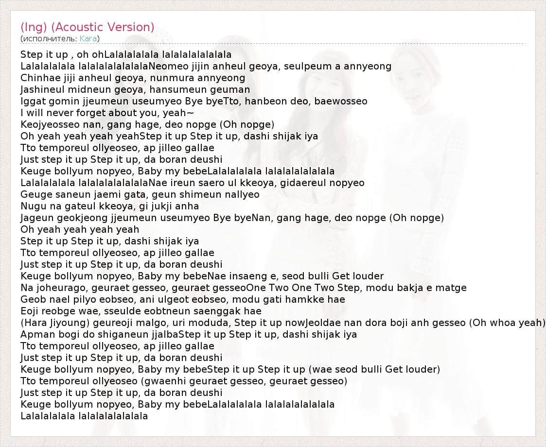 Keuge bollyum nopyeo, Baby my bebeStep it up Step it up (wae seod bulli Get louder)
