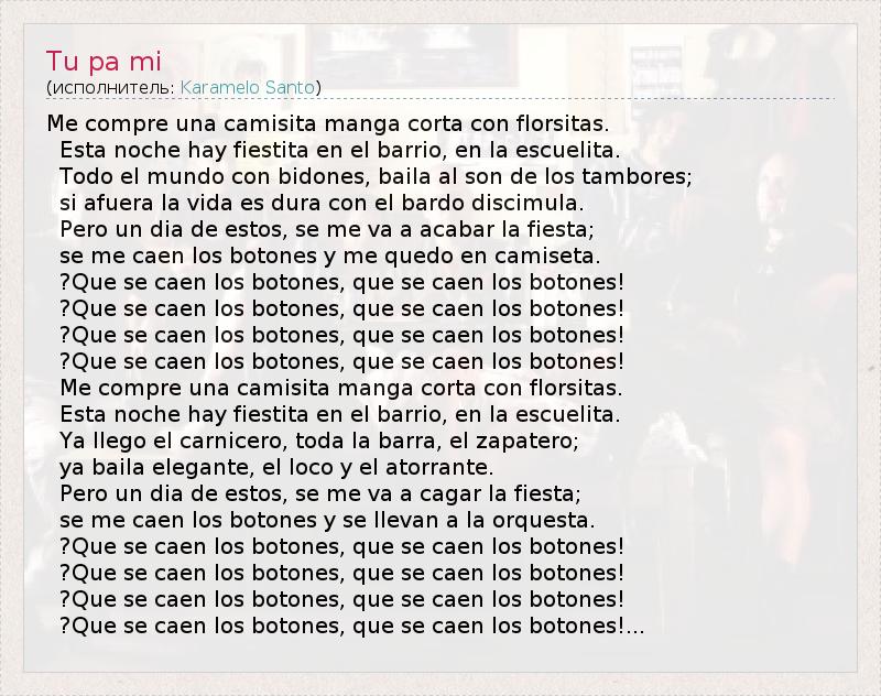 А как ты думаешь, о чем песня "Tu pa mi" ?