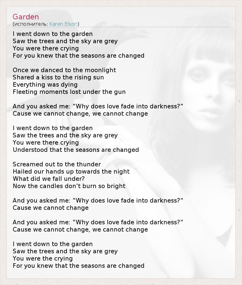 А как ты думаешь, о чем песня "Garden" ?