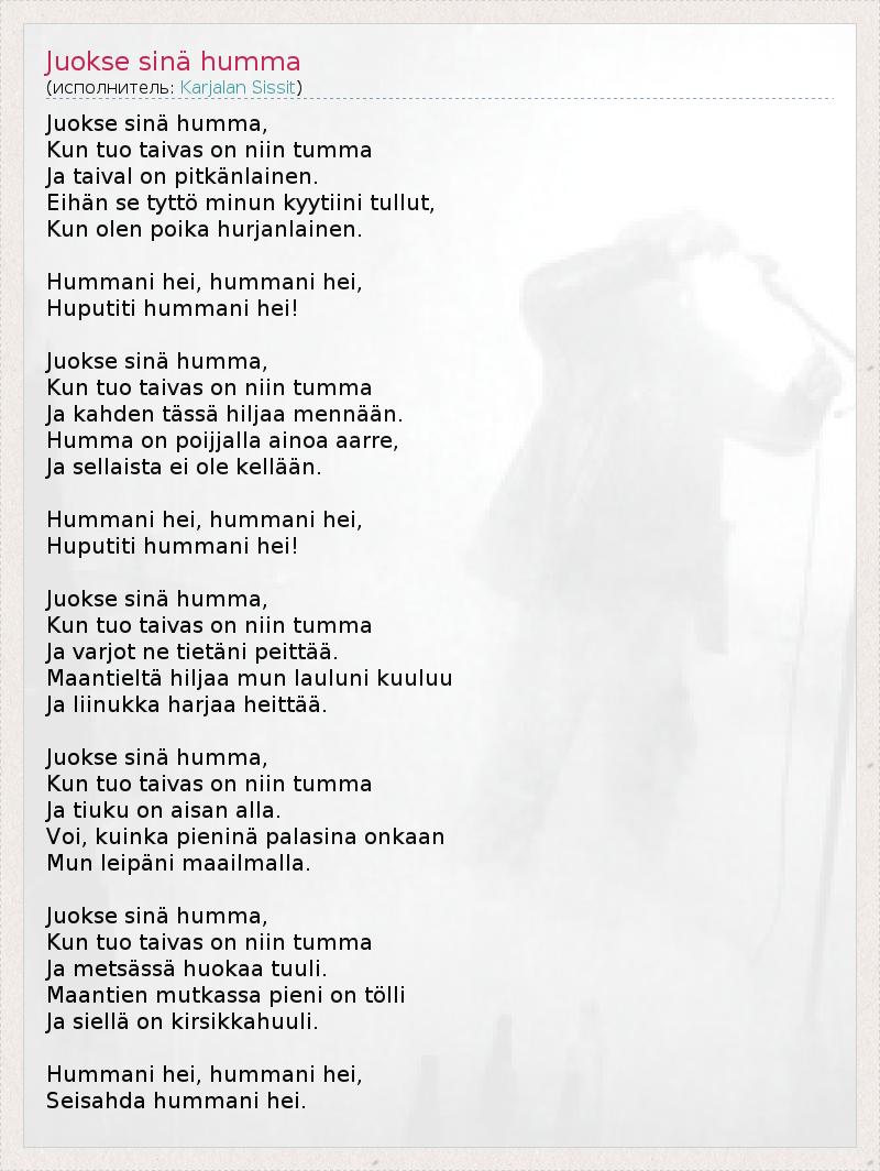 А как ты думаешь, о чем песня "Juokse sinä humma" ?