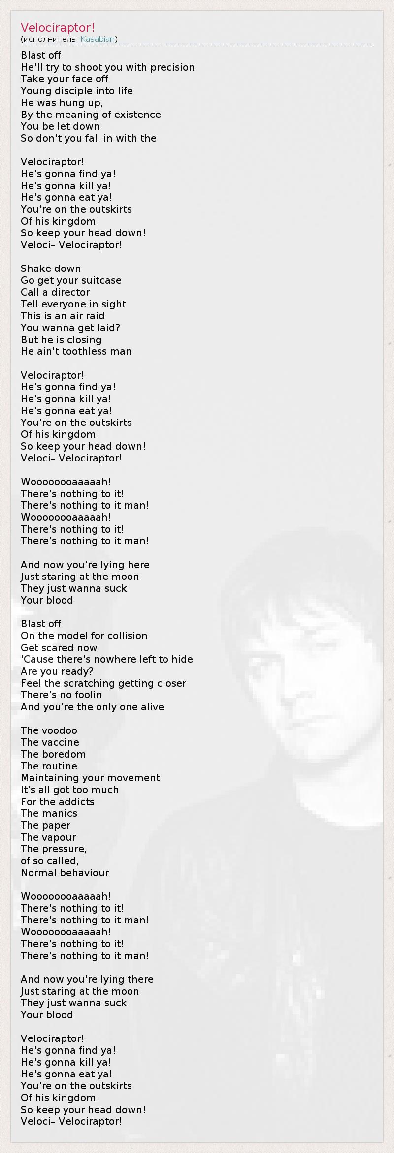 А как ты думаешь, о чем песня "Velociraptor!" ?