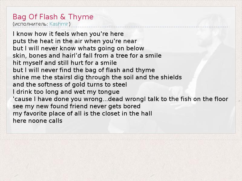 ГлавнаяИсполнителиKashmirBag Of Flash & Thyme