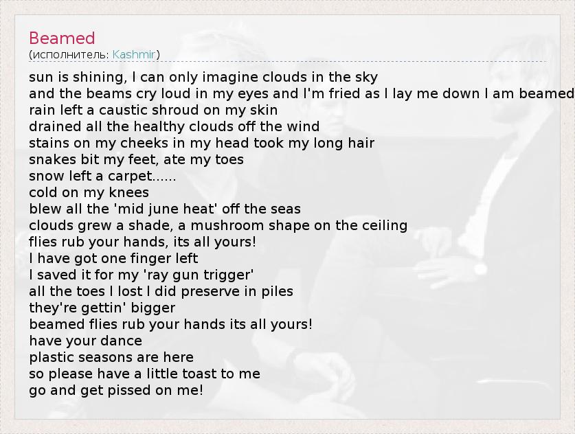 А как ты думаешь, о чем песня "Beamed" ?