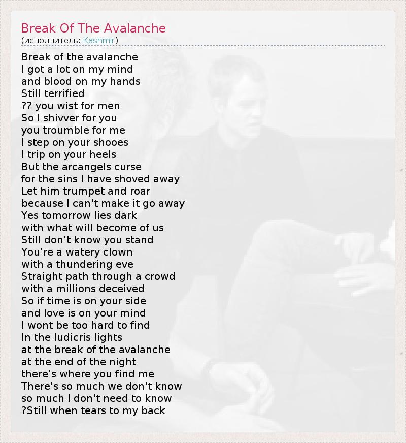 А как ты думаешь, о чем песня "Break Of The Avalanche" ?