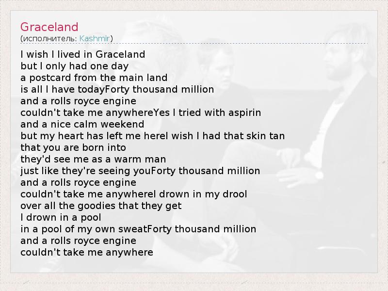 А как ты думаешь, о чем песня "Graceland" ?