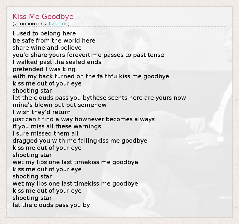 А как ты думаешь, о чем песня "Kiss Me Goodbye" ?