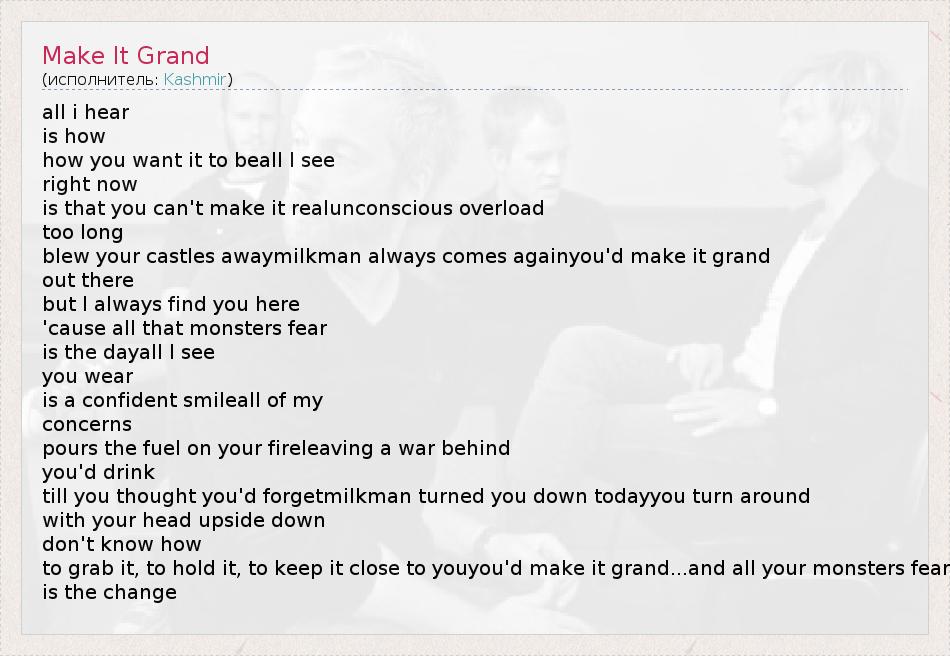 А как ты думаешь, о чем песня "Make It Grand" ?