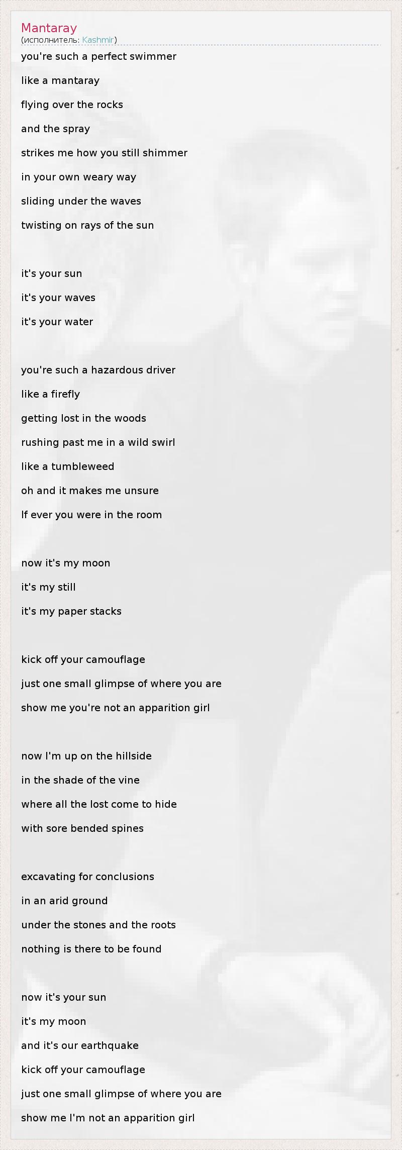 А как ты думаешь, о чем песня "Mantaray" ?