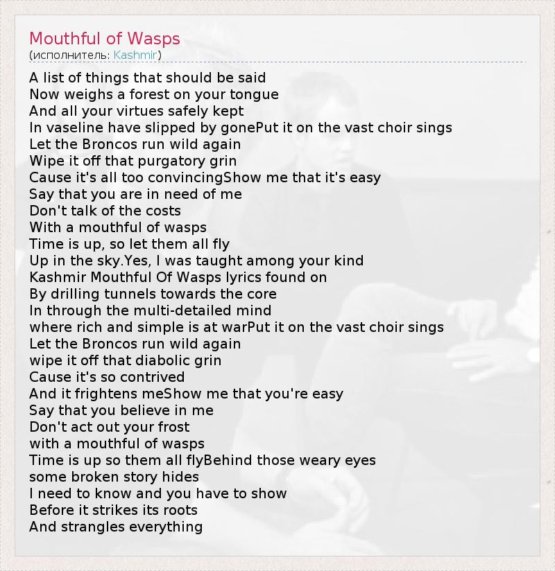А как ты думаешь, о чем песня "Mouthful of Wasps" ?