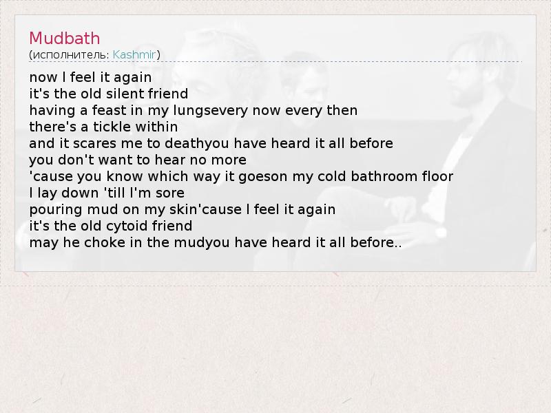 Это интересно:Kashmir - популярная датская рок-группа Основанный в начале 90-х как школьный бэнд под названием Nirvana (в дальнейшем название по известным причинам пришлось изменить), в 2000-х Kashmir получает культовый статус и дважды становится лучшей датской группой года (2000, 2004), помимо этого собрав множество музыкальных наград. В записи альбома "No Balance Place" (2005) приняли участие легендарные Дэвид Боуи и Лу... продолжение