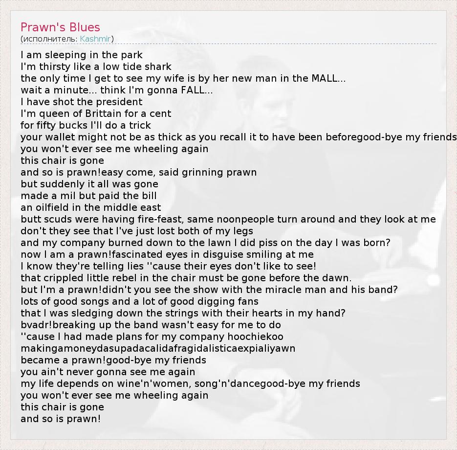 А как ты думаешь, о чем песня "Prawn's Blues" ?