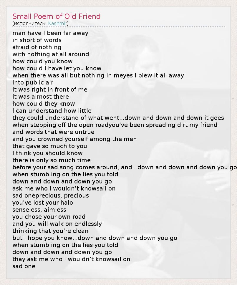 А как ты думаешь, о чем песня "Small Poem of Old Friend" ?