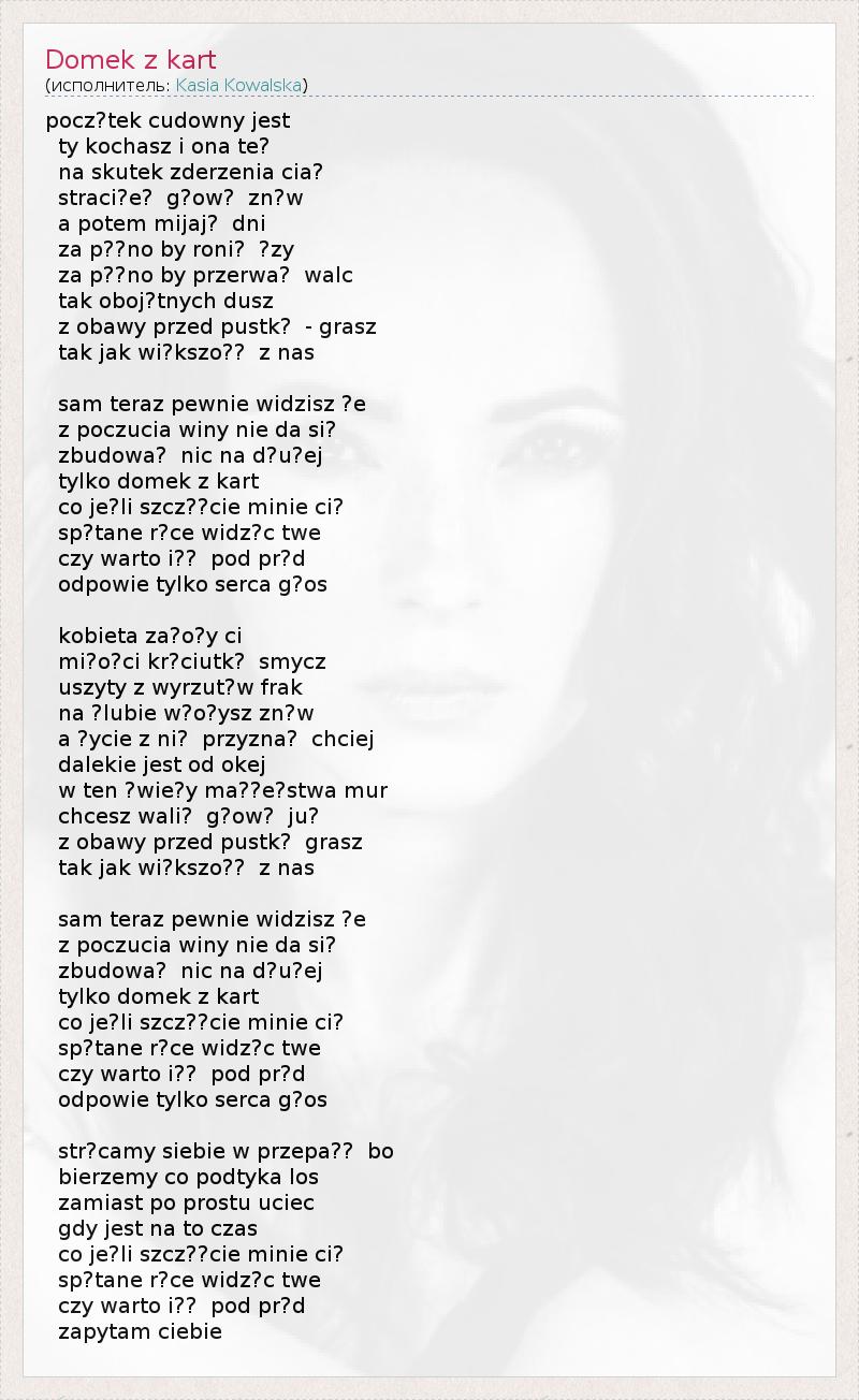 А как ты думаешь, о чем песня "Domek z kart" ?