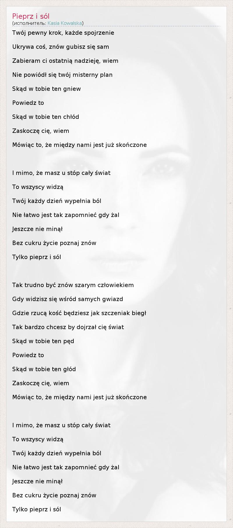 А как ты думаешь, о чем песня "Pieprz i sól" ?