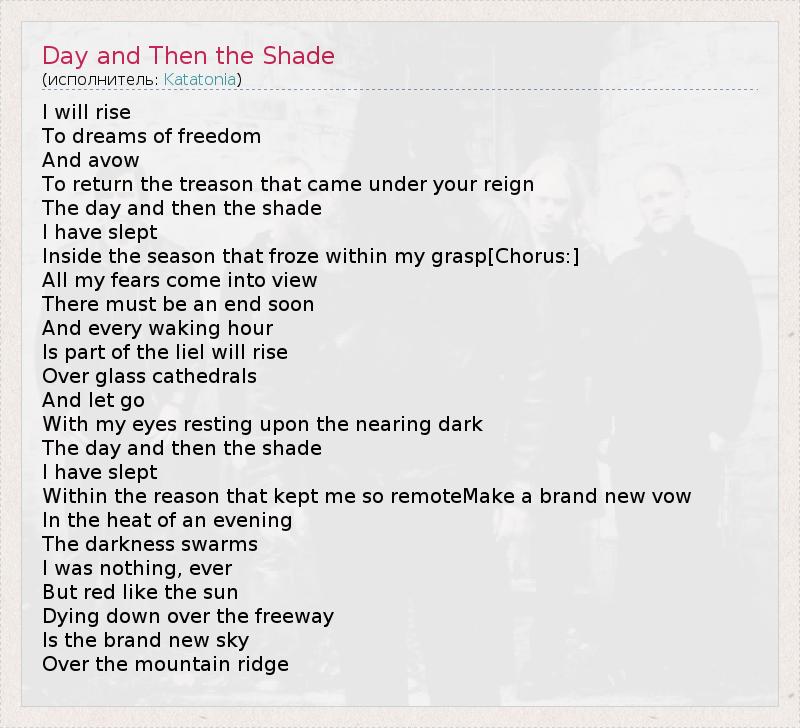 ГлавнаяИсполнителиKatatoniaDay and Then the Shade