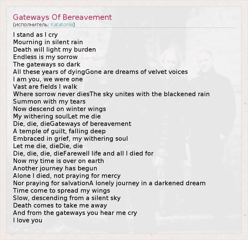 А как ты думаешь, о чем песня "Gateways Of Bereavement" ?