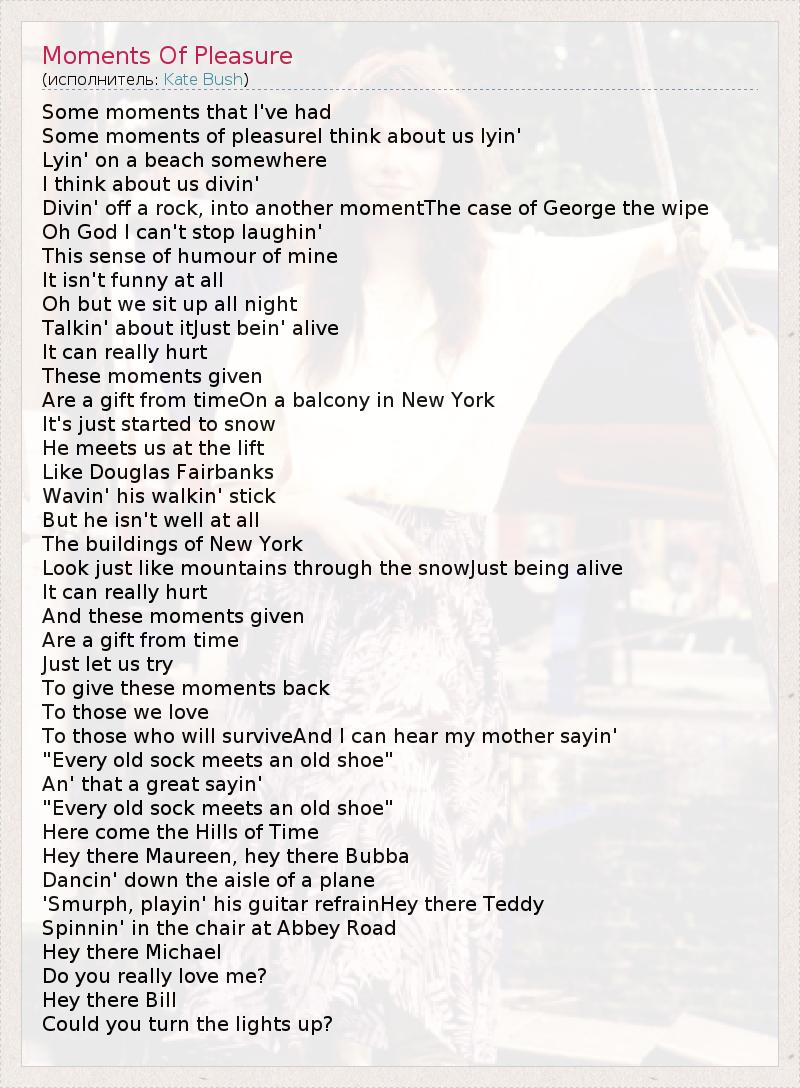А как ты думаешь, о чем песня "Moments Of Pleasure" ?