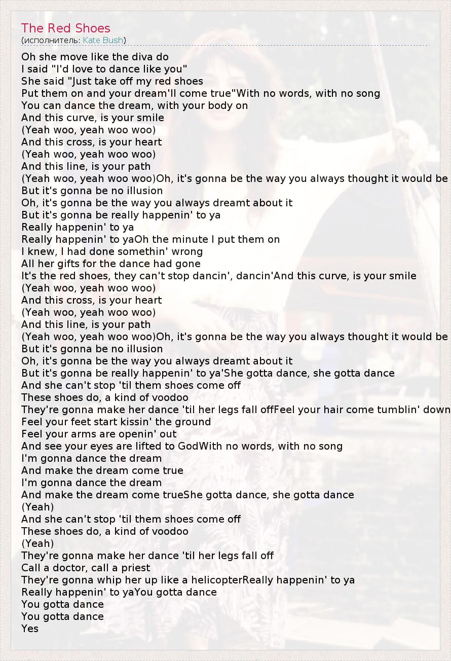 А как ты думаешь, о чем песня "The Red Shoes" ?