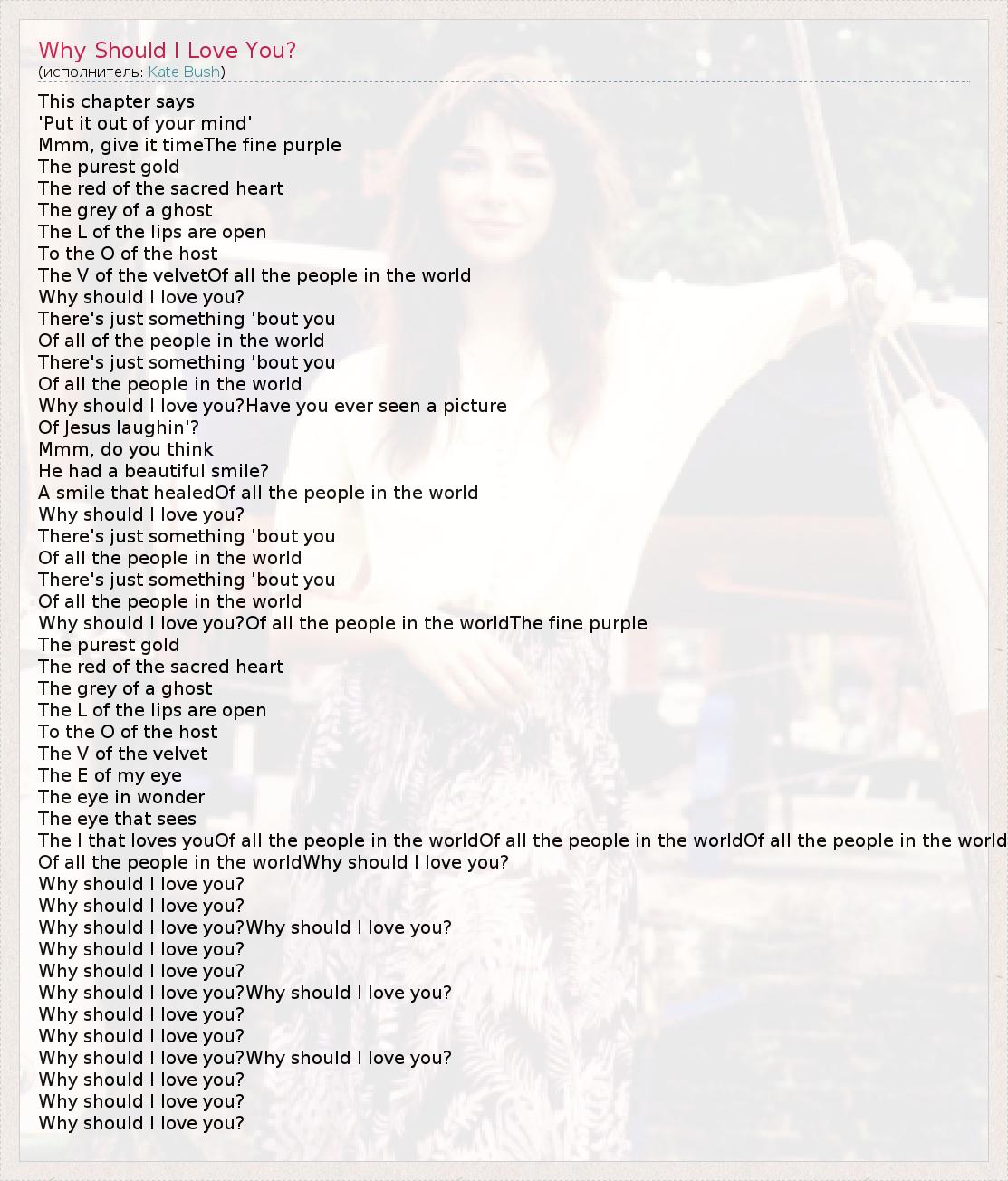 А как ты думаешь, о чем песня "Why Should I Love You?" ?