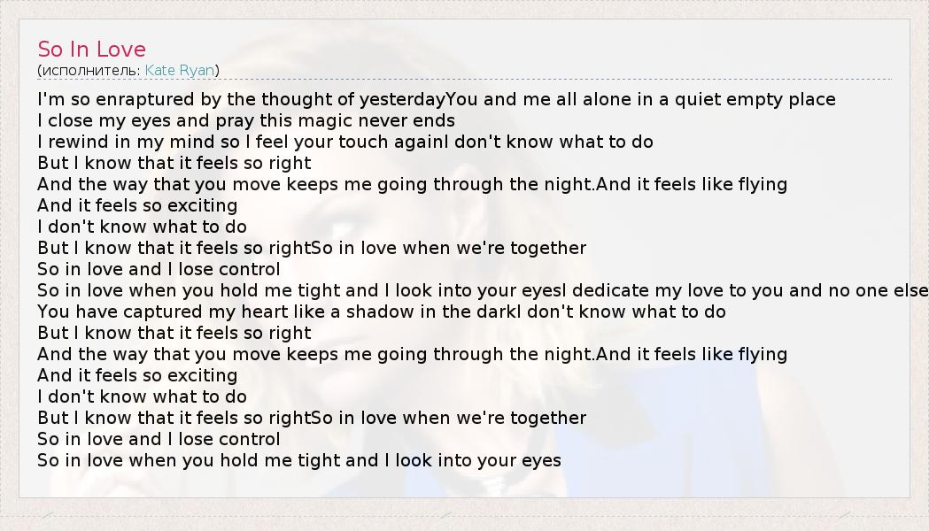 So in love when you hold me tight and I look into your eyesI dedicate my love to you and no one else