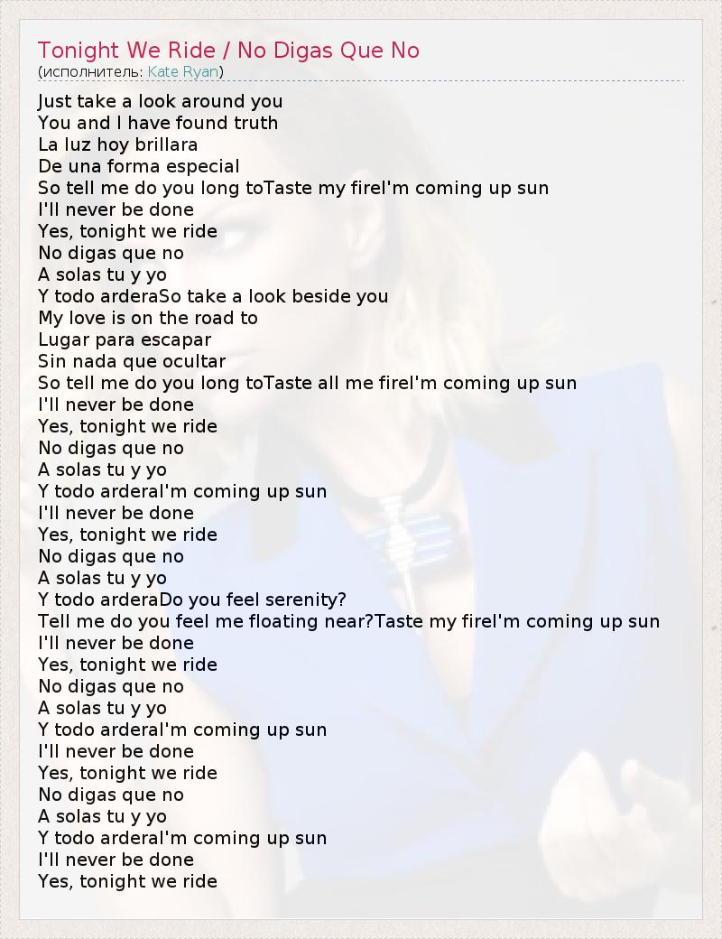 ГлавнаяИсполнителиKate RyanTonight We Ride / No Digas Que No