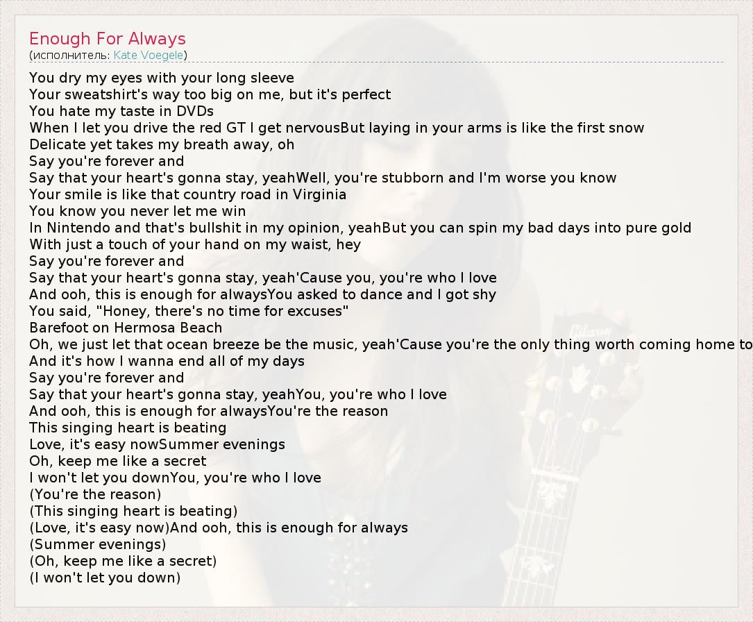 А как ты думаешь, о чем песня "Enough For Always" ?