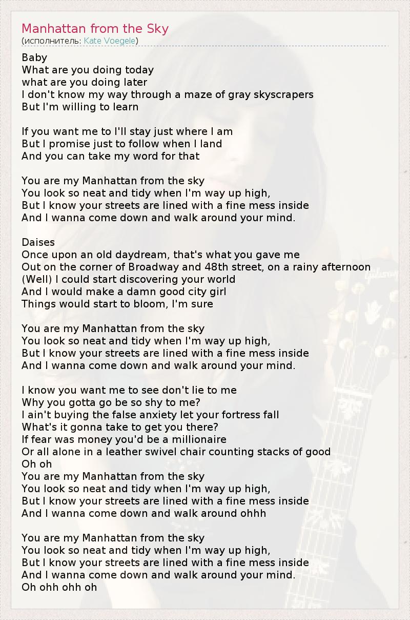 А как ты думаешь, о чем песня "Manhattan from the Sky" ?