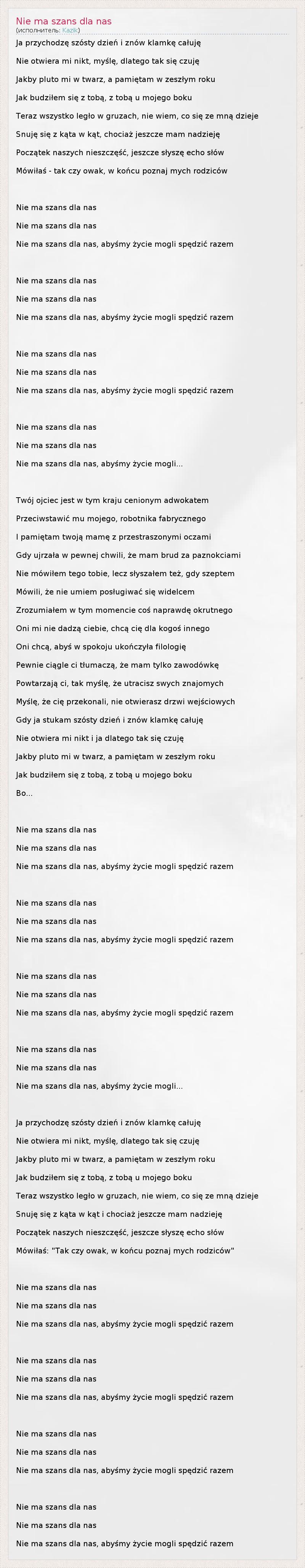 ГлавнаяИсполнителиKazikNie ma szans dla nas