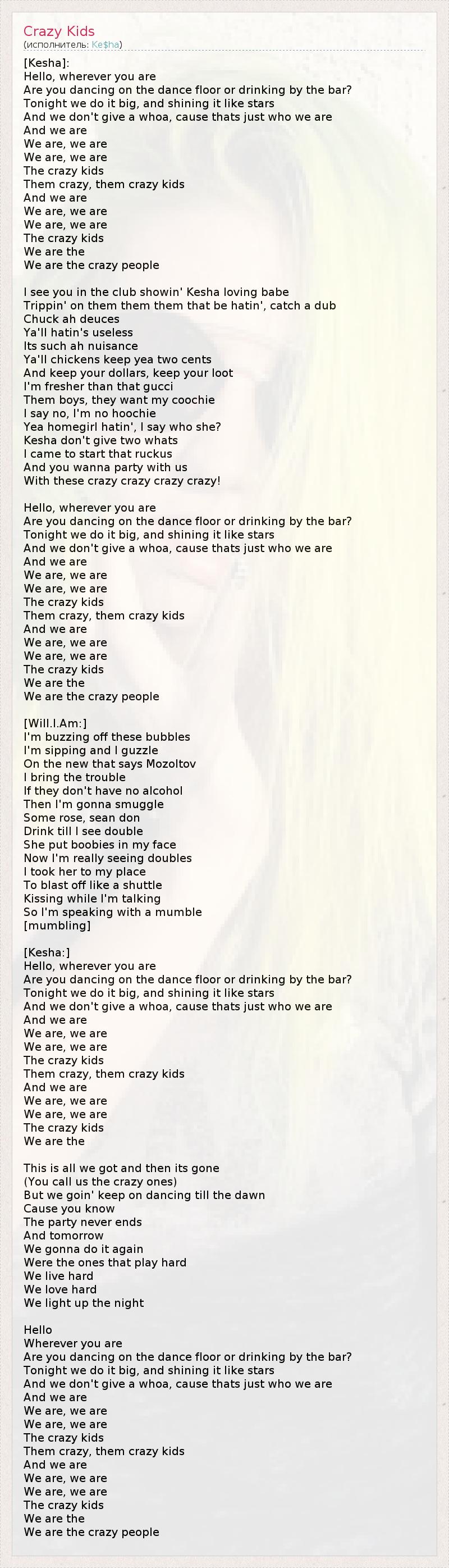 А как ты думаешь, о чем песня "Crazy Kids" ?