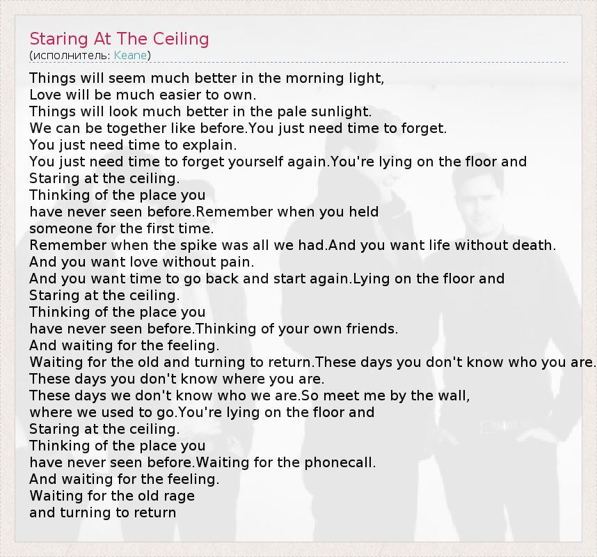 А как ты думаешь, о чем песня "Staring At The Ceiling" ?