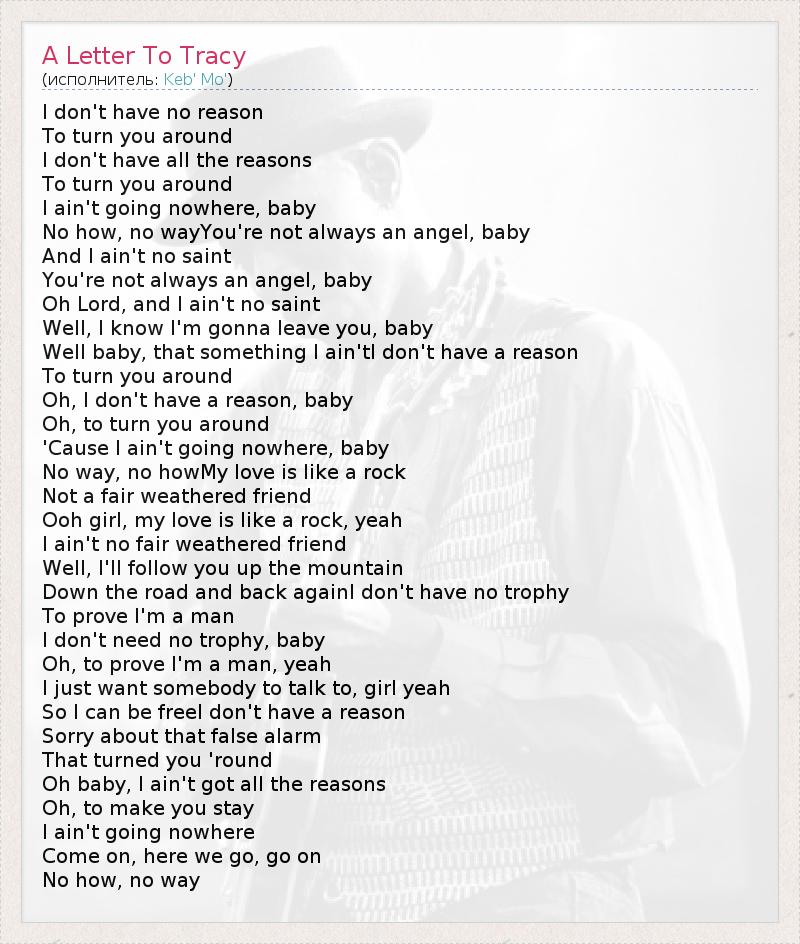 А как ты думаешь, о чем песня "A Letter To Tracy" ?