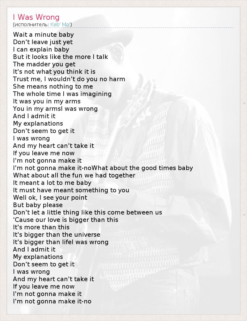 А как ты думаешь, о чем песня "I Was Wrong" ?