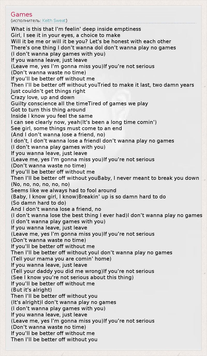 (I don't wanna lose the best thing I ever had)I don't wanna play no games