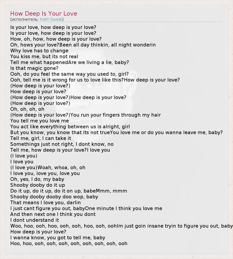 Tell me, how deep is your love?I love you