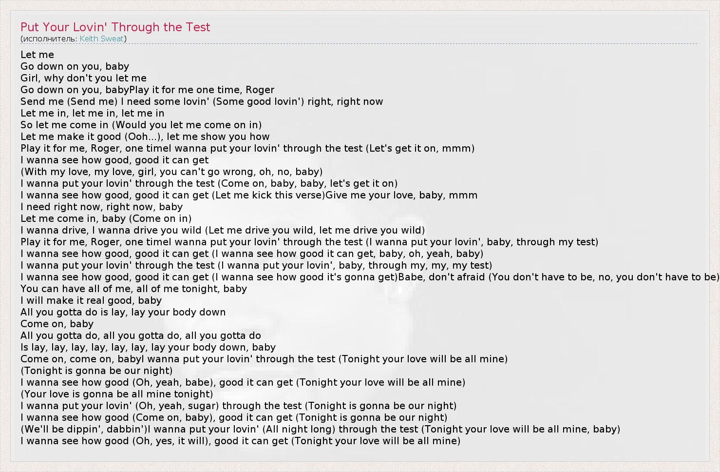 А как ты думаешь, о чем песня "Put Your Lovin' Through the Test" ?