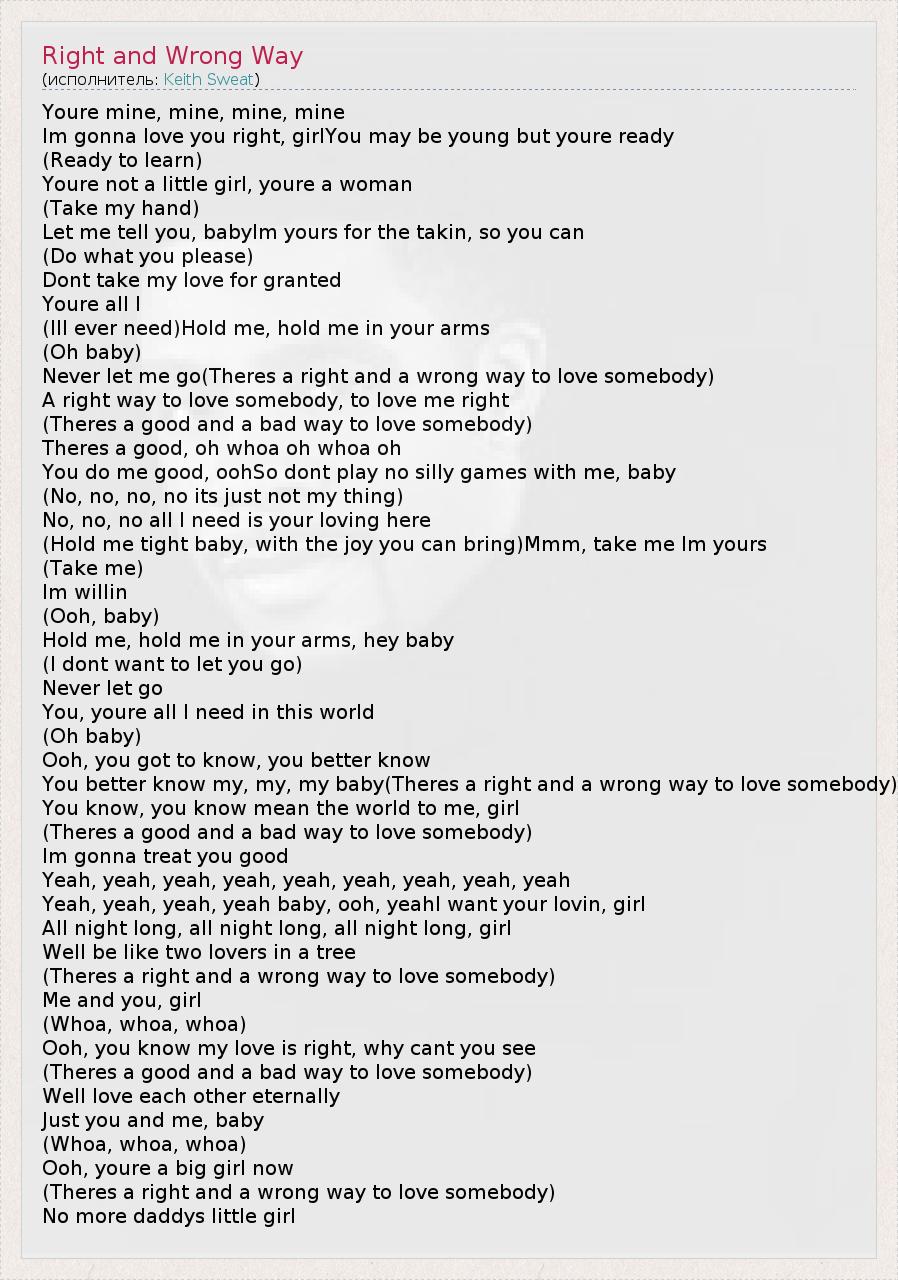 А как ты думаешь, о чем песня "Right and Wrong Way" ?