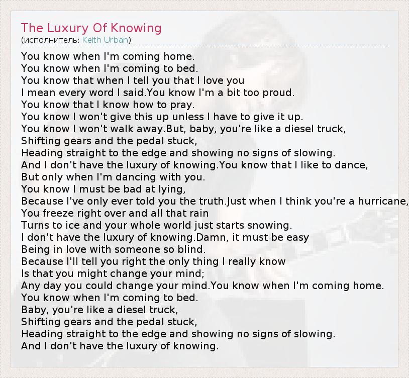 А как ты думаешь, о чем песня "The Luxury Of Knowing" ?