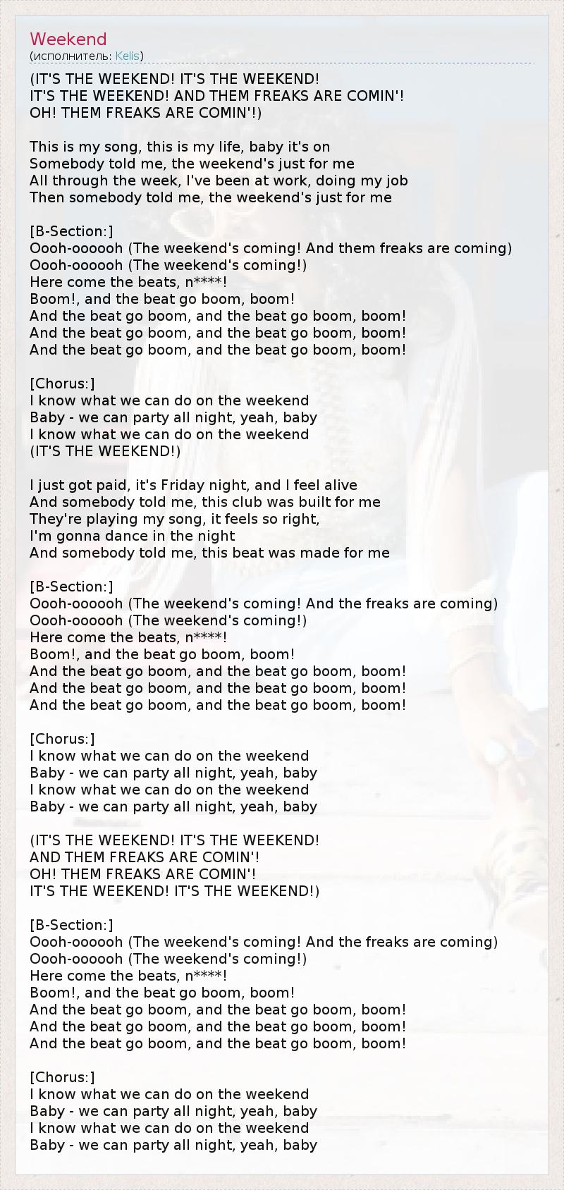 А как ты думаешь, о чем песня "Weekend" ?
