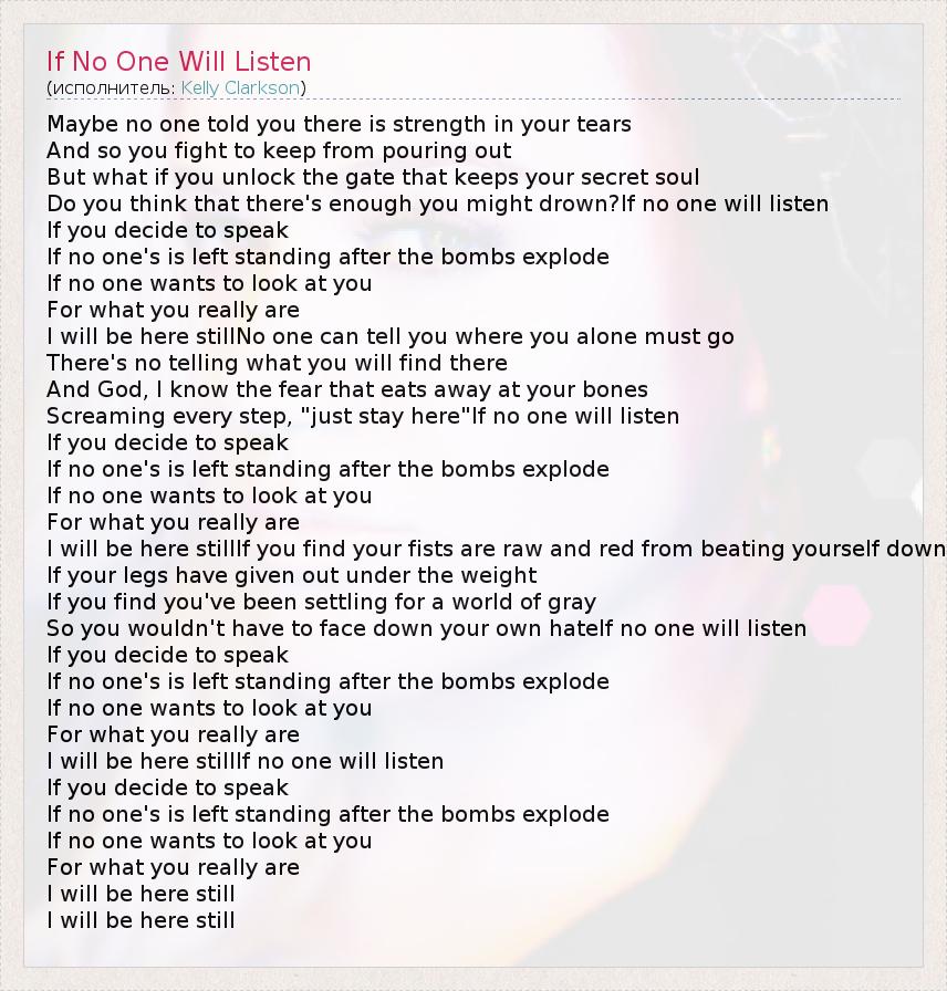 А как ты думаешь, о чем песня "If No One Will Listen" ?