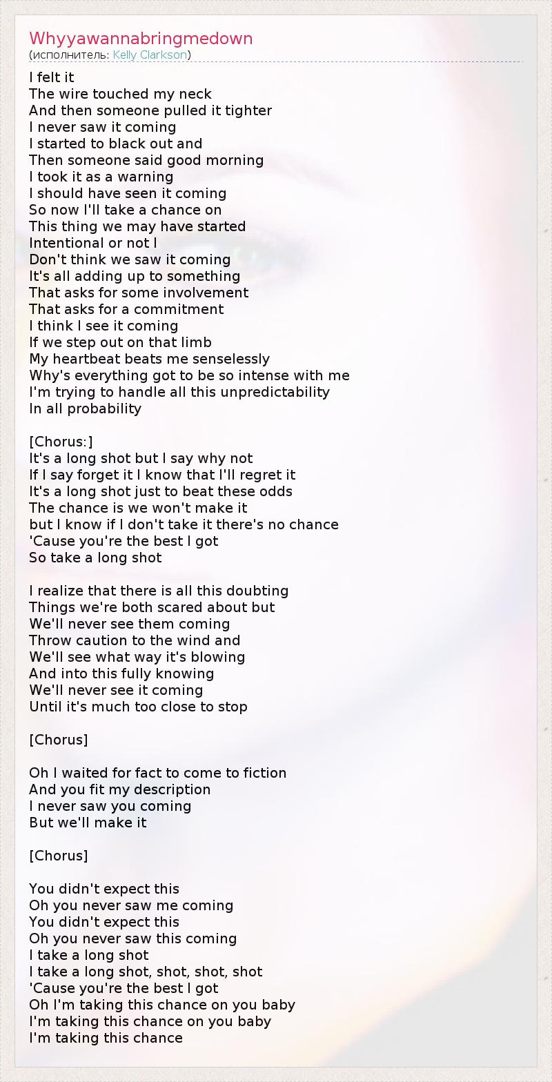 А как ты думаешь, о чем песня "Whyyawannabringmedown" ?