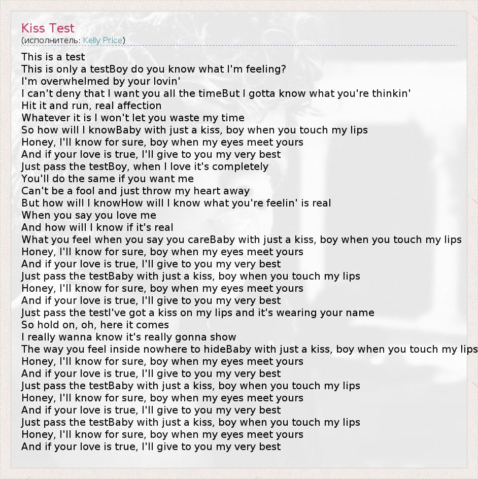 This is a test This is only a testBoy do you know what I'm feeling? I'm overwhelmed by your lovin' I can't deny that I want you all the timeBut I gotta know what you're thinkin' Hit it and run, real affection Whatever it is I won't let you waste my time So how will I knowBaby with just a kiss, boy when you touch my lips Honey, I'll know for sure, boy when my eyes meet yours And if your love is true, I'll give to you my very best Just pass the testBoy, when I love it's completely You'll do the same if you want me Can't be a fool and just throw my heart away But how will I knowHow will I know what you're feelin' is real When you say you love me And how will I know if it's real What you feel when you say you careBaby with just a kiss, boy when you touch my lips Honey, I'll know for sure, boy when my eyes meet yours And if your love is true, I'll give to you my very best Just pass the testBaby with just a kiss, boy when you touch my lips Honey, I'll know for sure, boy when my eyes meet yours And if your love is true, I'll give to you my very best Just pass the testI've got a kiss on my lips and it's wearing your name So hold on, oh, here it comes I really wanna know it's really gonna show The way you feel inside nowhere to hideBaby with just a kiss, boy when you touch my lips Honey, I'll know for sure, boy when my eyes meet yours And if your love is true, I'll give to you my very best Just pass the testBaby with just a kiss, boy when you touch my lips Honey, I'll know for sure, boy when my eyes meet yours And if your love is true, I'll give to you my very best Just pass the testBaby with just a kiss, boy when you touch my lips Honey, I'll know for sure, boy when my eyes meet yours And if your love is true, I'll give to you my very best