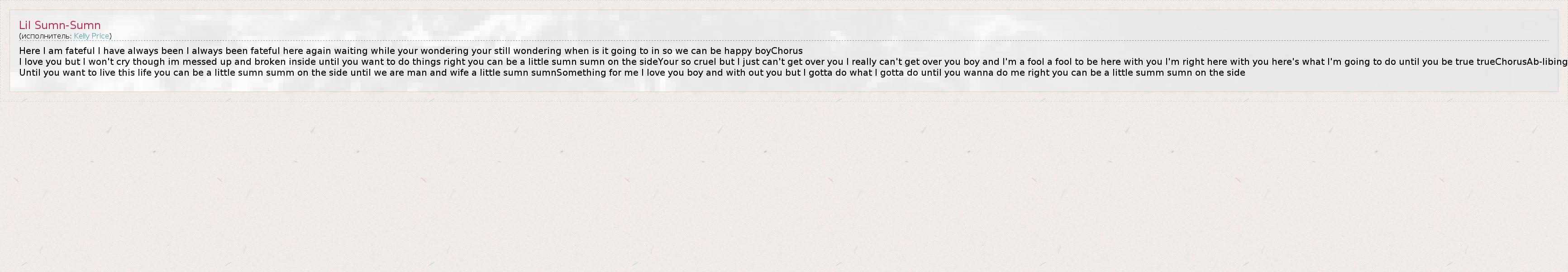Until you want to live this life you can be a little sumn summ on the side until we are man and wife a little sumn sumnSomething for me I love you boy and with out you but I gotta do what I gotta do until you wanna do me right you can be a little summ sumn on the side
