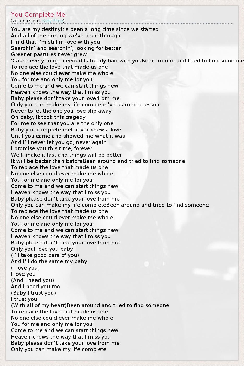 А как ты думаешь, о чем песня "You Complete Me" ?