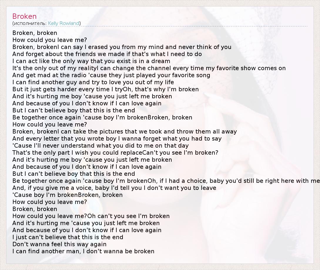 How could you leave me?Oh can't you see I'm broken