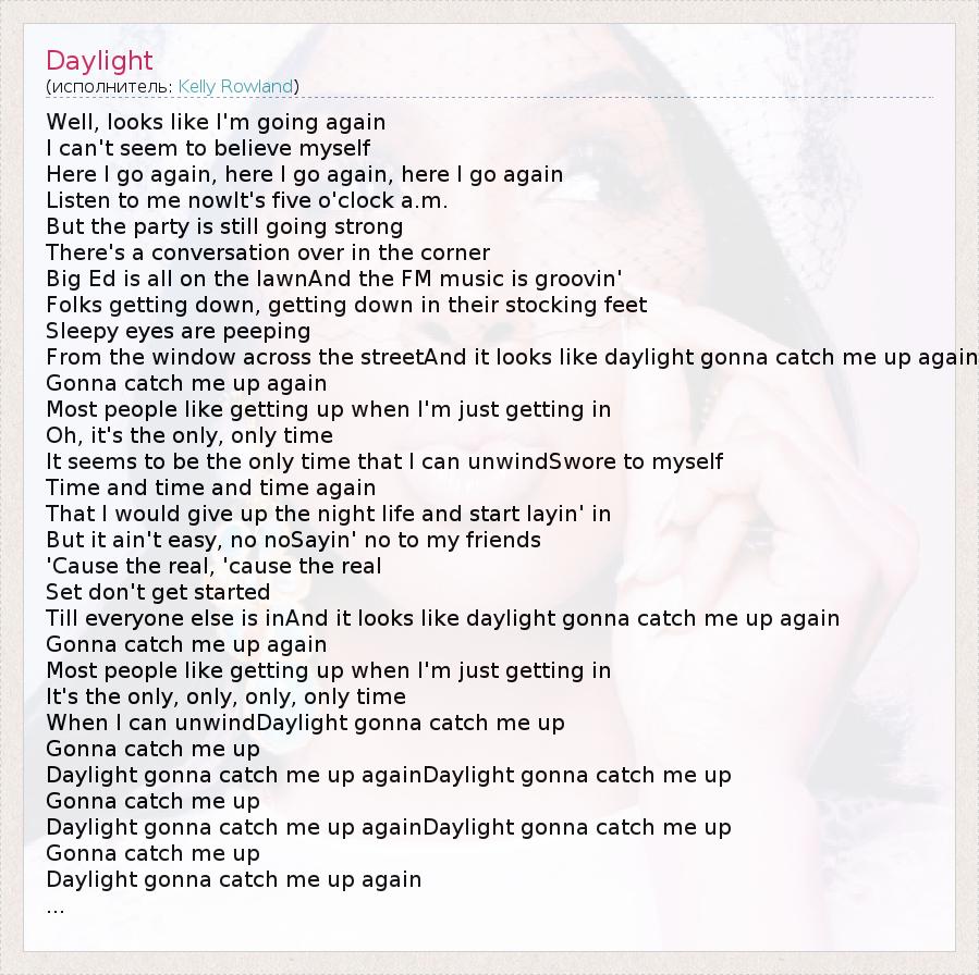 From the window across the streetAnd it looks like daylight gonna catch me up again