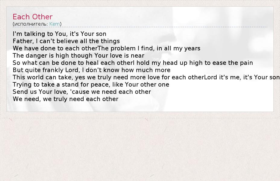 This world can take, yes we truly need more love for each otherLord it's me, it's Your son